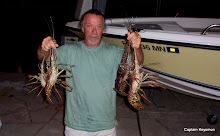 Captain Ray is hoding one of the Dolphin he and judy caught the other day. He also caught a hook in his finger.